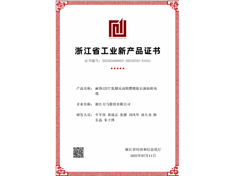 To meet the evolving demands of market prospects, Wanma Special Cables—a subsidiary of Wanma Equipment & Cables—leveraged its keen market insight. Targeting market characteristics and vast potential, its R&D team independently developed and produced a new product: heat-resistant 125°C low-smoke, halogen-free, flame-retardant rubber petroleum drilling rig cables.